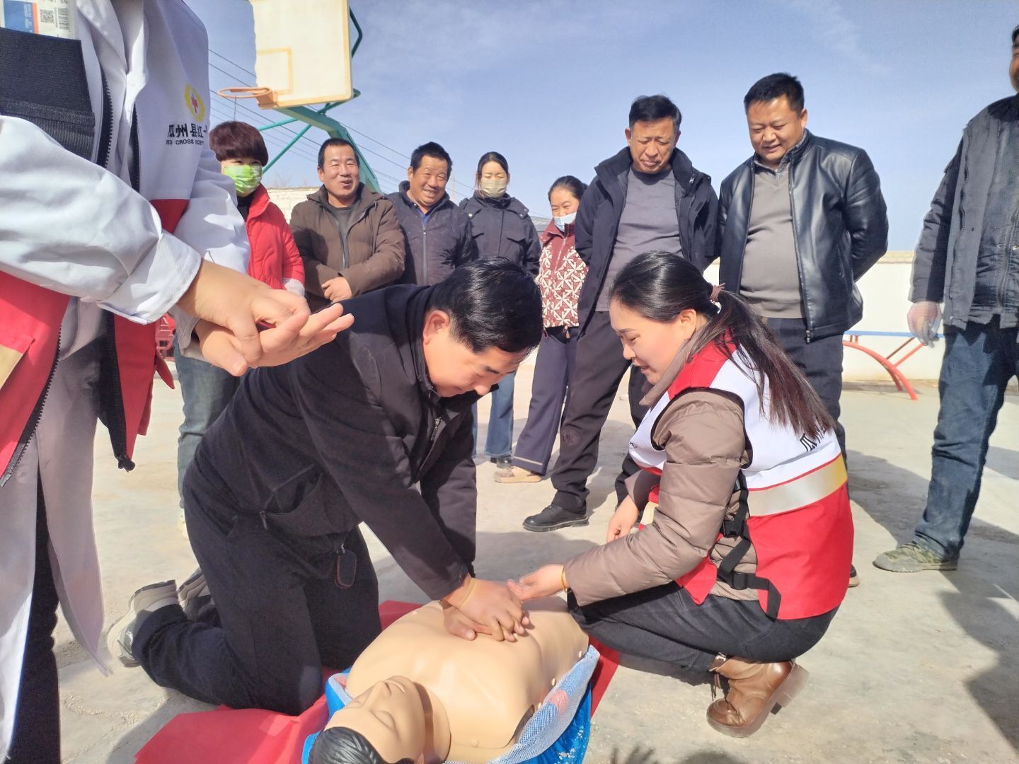 培訓(xùn)緊扣群眾日常生活需求,聚焦社區(qū)、農(nóng)村常見突發(fā)狀況和意外傷害,由紅十字會(huì)專業(yè)講師采取“理論講解+實(shí)操演練+視頻演示”的多元化教學(xué)模式,將專業(yè)急救知識(shí)轉(zhuǎn)化為通俗易懂、易學(xué)易用的實(shí)操技能。講師結(jié)合真實(shí)案例,圍繞心肺復(fù)蘇、自動(dòng)體外除顫儀使用、氣道異物梗阻處理、煤氣中毒急救等內(nèi)容進(jìn)行細(xì)致講解,并指導(dǎo)參訓(xùn)群眾利用模擬人教具反復(fù)練習(xí),幫助群眾在關(guān)鍵時(shí)刻敢救、會(huì)救、能救。