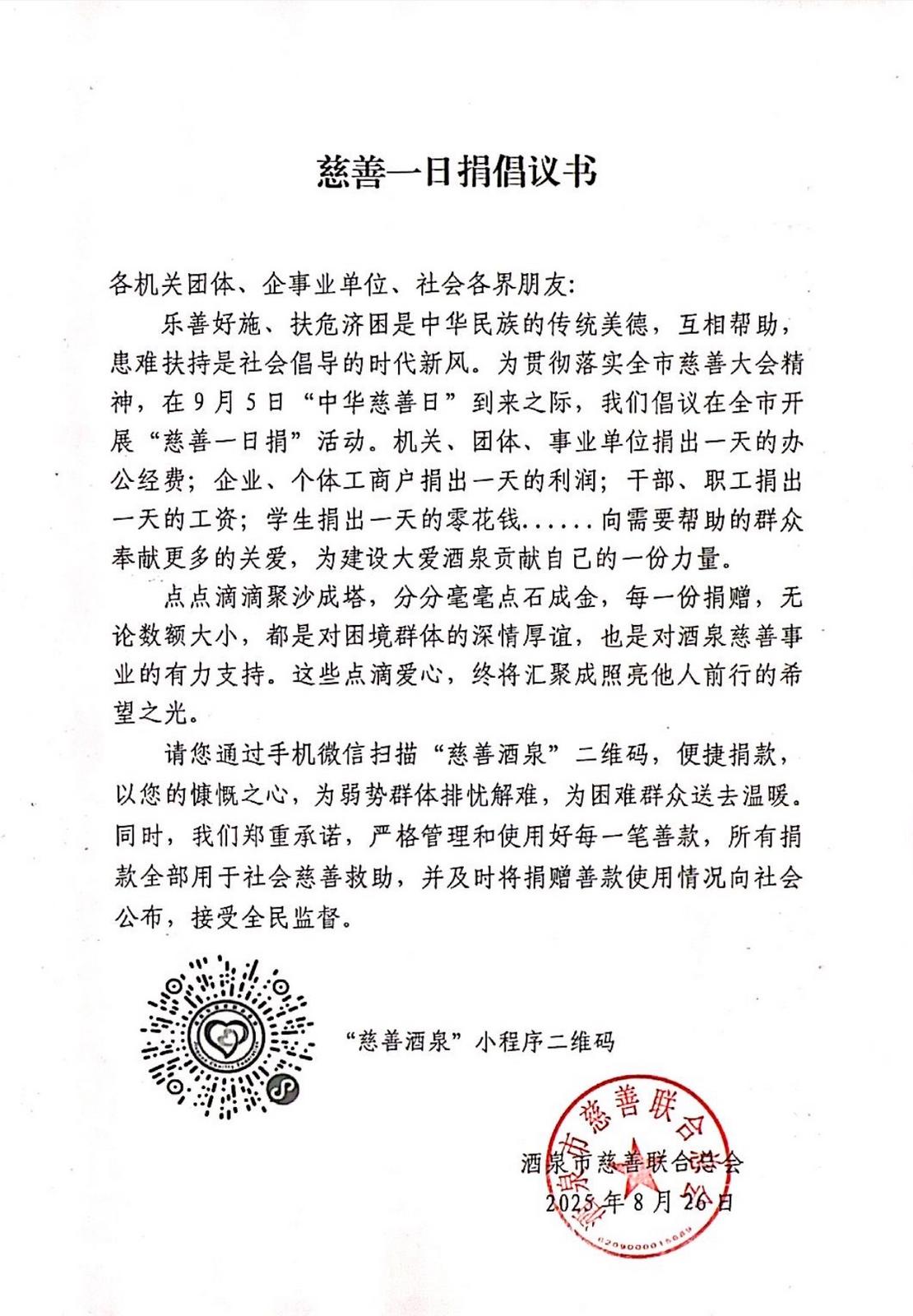 慈善一日捐倡議書